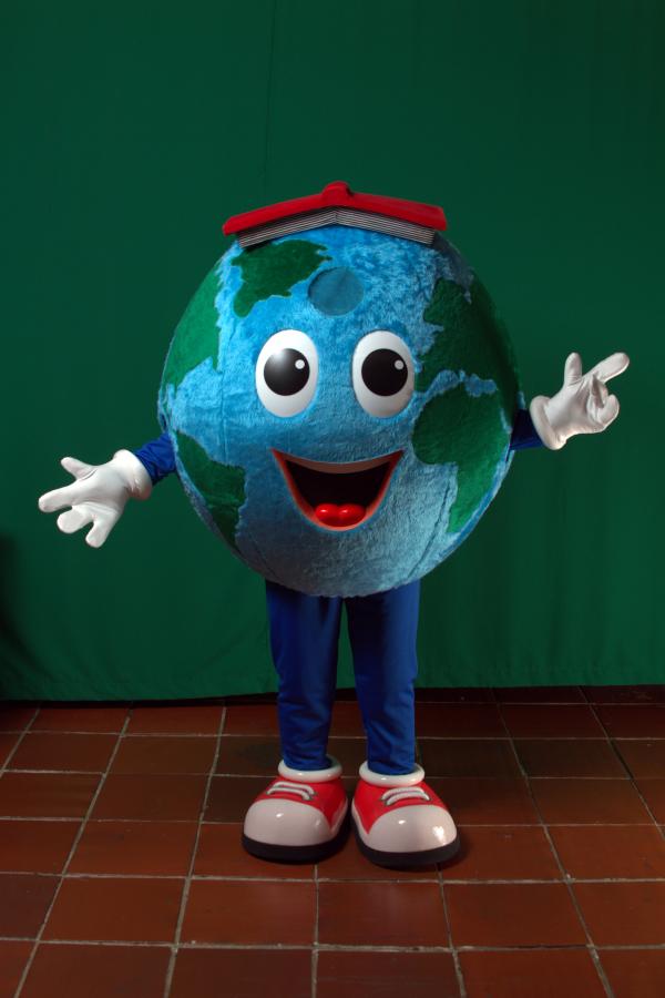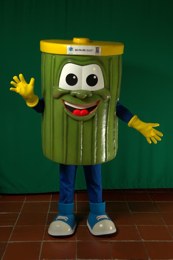 Boneco mascote utilizado em ações institucionais de conscientização ambiental.