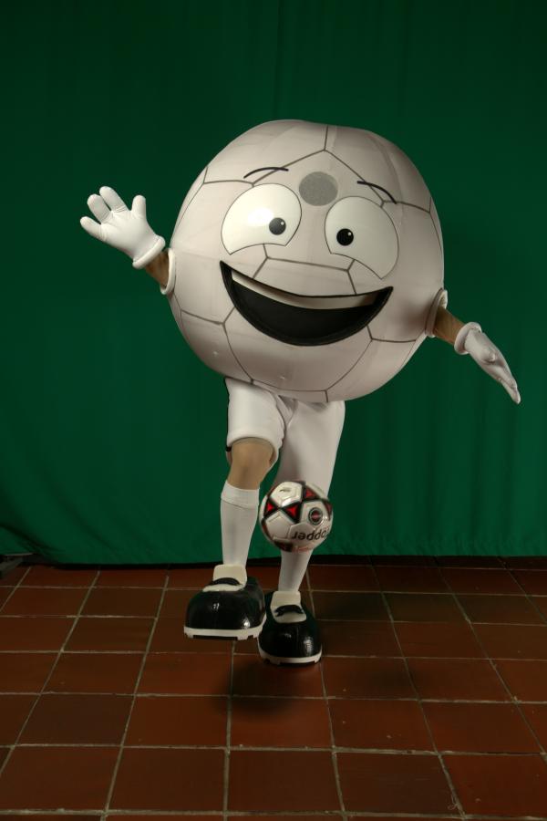 Exemplo de como um boneco fantasia pode vestir a camisa de um time de futebol e se tornar um ótimo mascote!